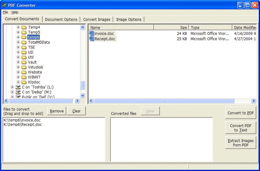 PDF Converter is a utility to do batch conversions of four types: - Convert Microsoft Word, Excel, PowerPoint, WordPerfect, rich text (RTF) and plain text files to Adobe PDF files. - Convert images (JPG, GIF, BMP, PNG, TIF, WMF, EMF) to PDF files. - Convert PDF files to plain text. - Extract images from PDF files. |